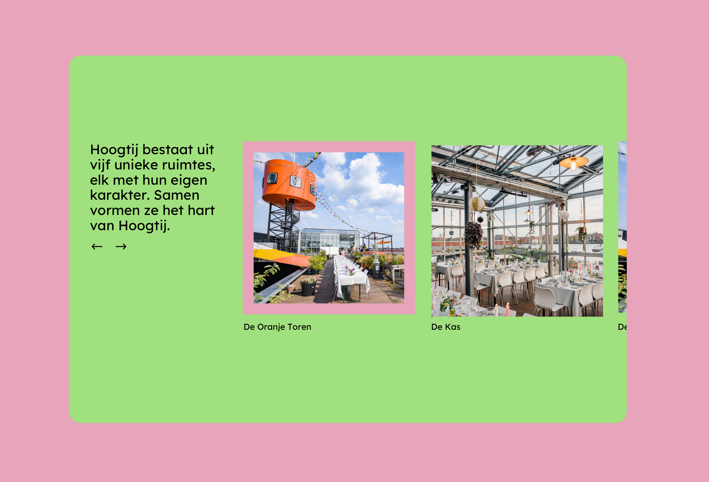 Hoogtij, een iconische evenementenlocatie in Amsterdam-Noord, zocht een frisse huisstijl en website die hun creatieve en open karakter vangen. Met die uitdaging gingen wij graag aan de slag!
